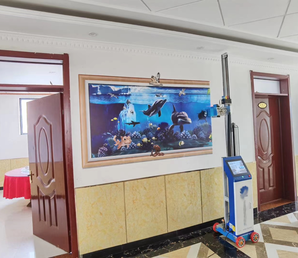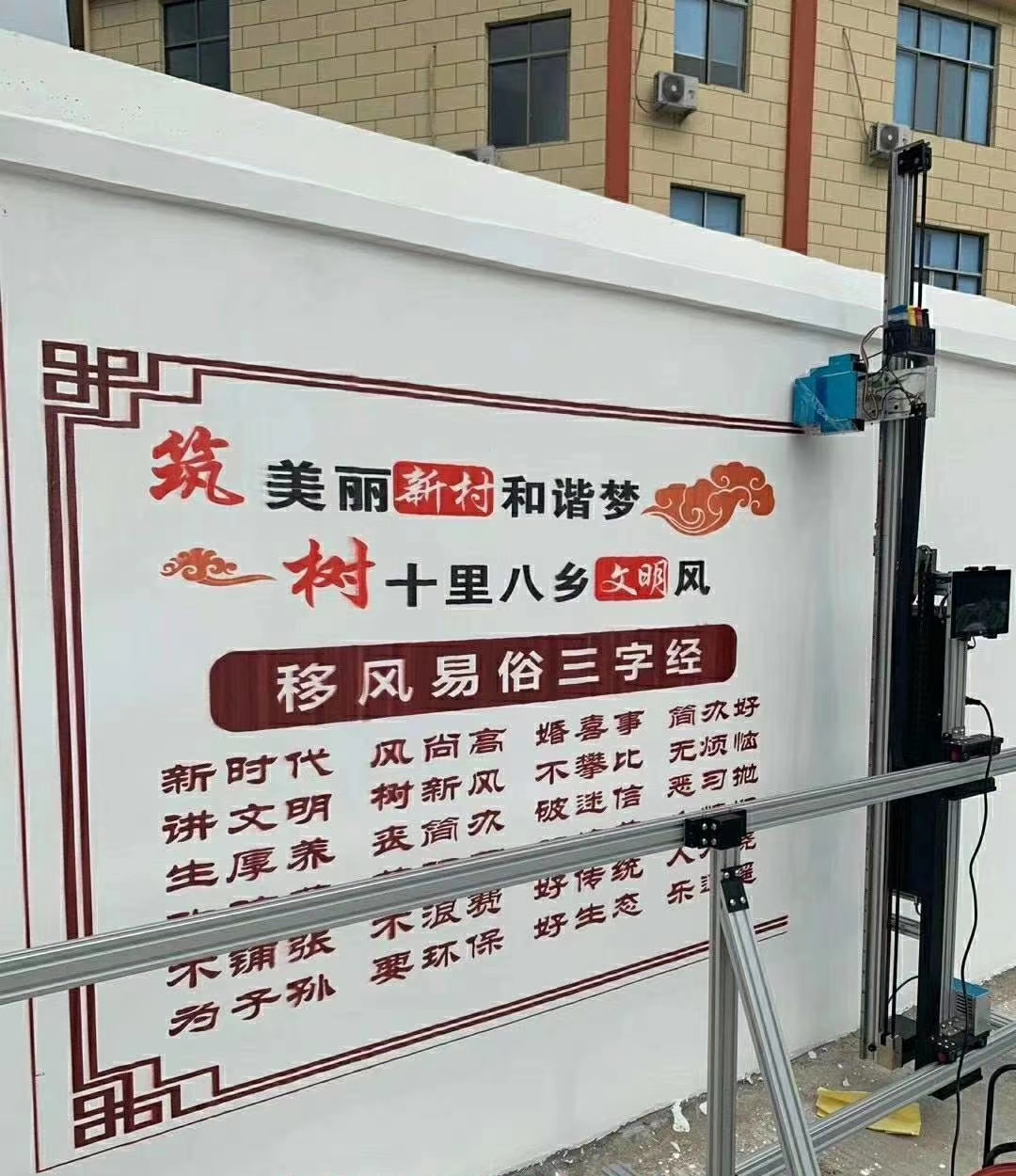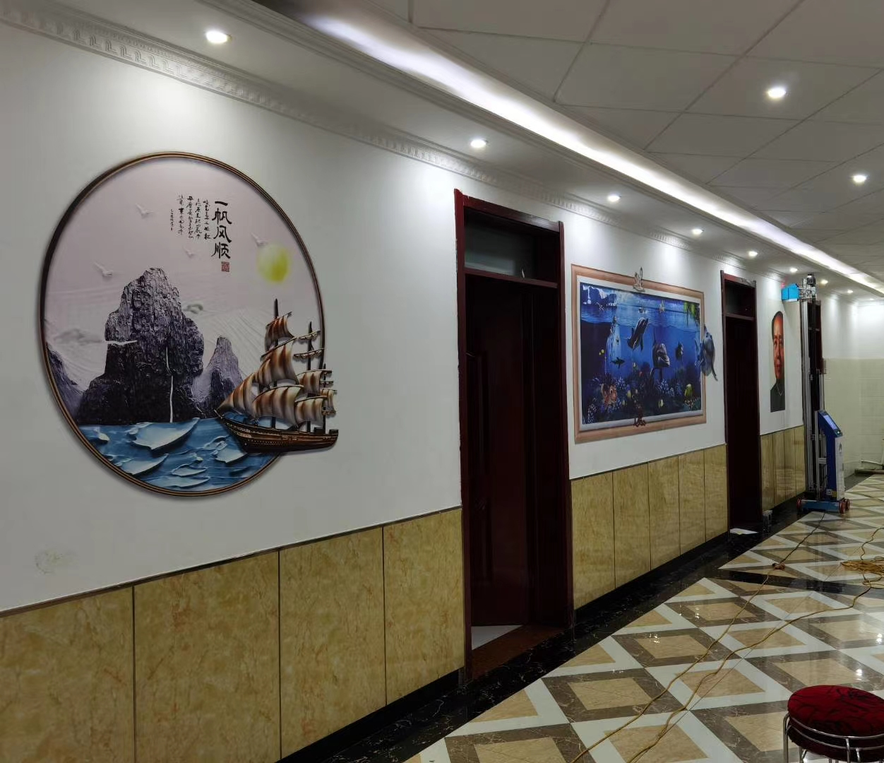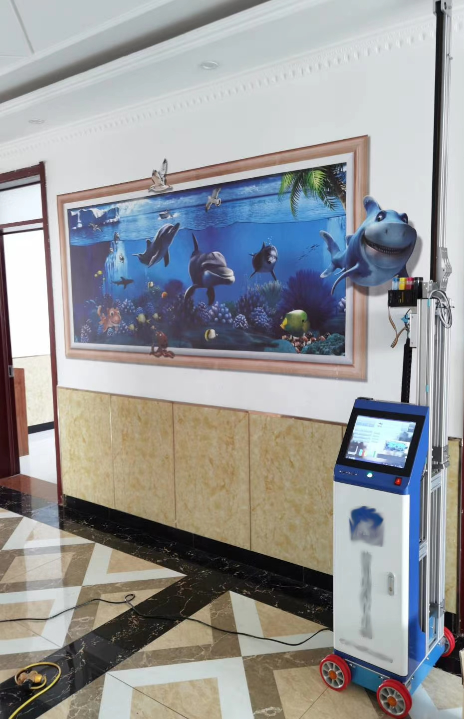 公司最新引進一批價格昂貴的最新款墻畫打印機,打印墻畫價格便宜效果好,3D畫、新農村墻體、文化墻、室內室外都可以打印。
